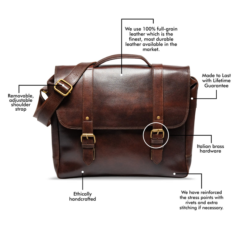 Each bag is handcrafted in small batches by expert artisans using old-world techniques that have been handed down for generations. These bags are made from vegetable-tanned full grain leather, ensuring both sustainability and durability.