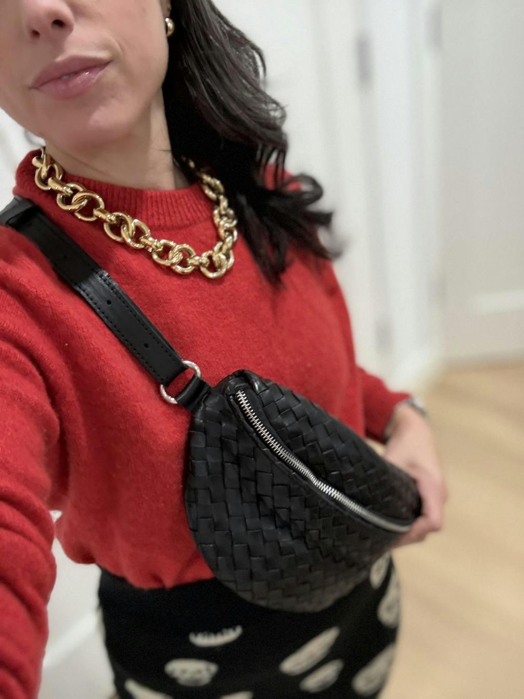 Nexus Woven Leather Belt Bag - Woven Black With Red Lining