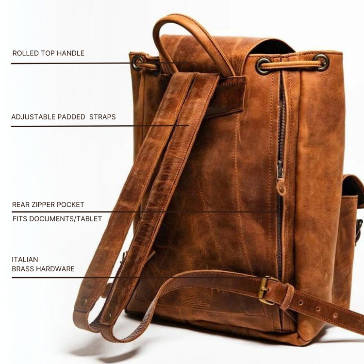Each backpack is handcrafted in small batches by expert artisans using old-world techniques that have been handed down for generations. These bags are made from vegetable-tanned full grain leather, ensuring both sustainability and durability.