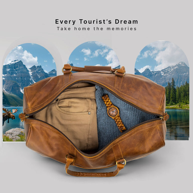 Upgrade your travel style with our top-rated Tourist Leather Duffle and Rasage Toiletry Kit bundle. Handcrafted from premium vegetable-tanned full-grain leather, this duo combines elegance, durability, and functionality. The 50L duffle, perfect for 3-5 day trips, is airline carryon approved and ideal for road trips. Paired with the spacious and lightweight toiletry kit, this bundle ensures you travel in style and stay organized.