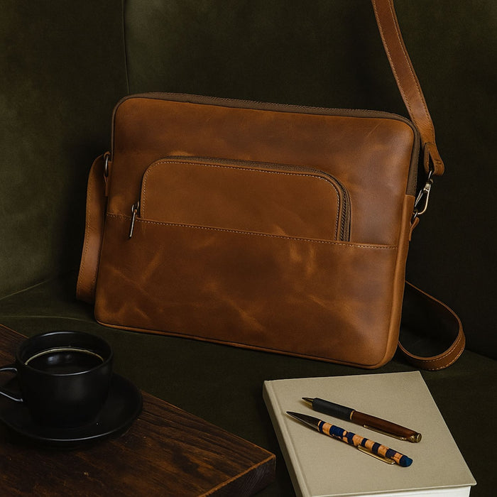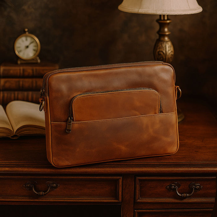 Our Leather Tech Sleeve comes in two sizes: the Small fits 13” and 14” laptops, while the Large is perfect for 15” to 16” models. Tailored to provide a snug, stylish fit for all your tech needs.