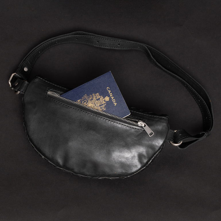 Handcrafted from vegetable-tanned full-grain leather with a unique handwoven design that takes 20 hours to create each piece, the Nexus Leather Belt Bag combines craftsmanship with functionality. Designed with moms and travelers in mind, it offers a hands-free experience—wear it crossbody, on the waist, or over the shoulder. The theft-proof strap ensures security while the interior, lined with cotton, features dedicated slots to keep daily essentials organized.