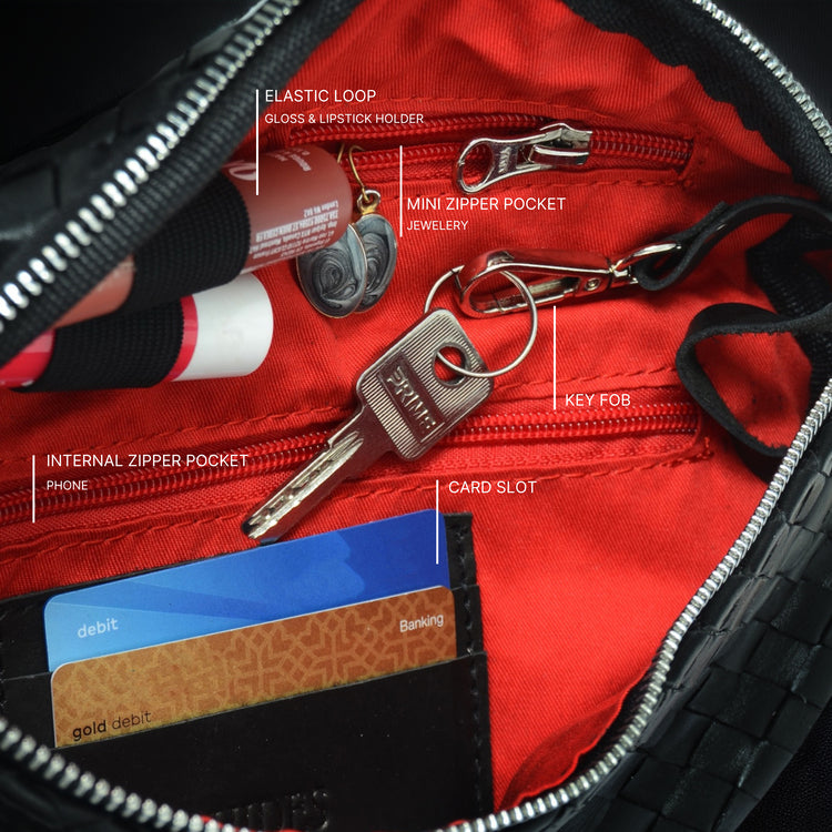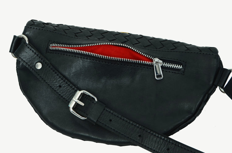 Nexus Woven Leather Belt Bag - Woven Black With Red Lining