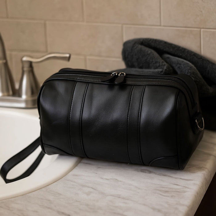 Keep your grooming essentials organized in our durable vegetable-tanned leather Rasage Toiletry Kit, which offers a wide zip opening for easy access.