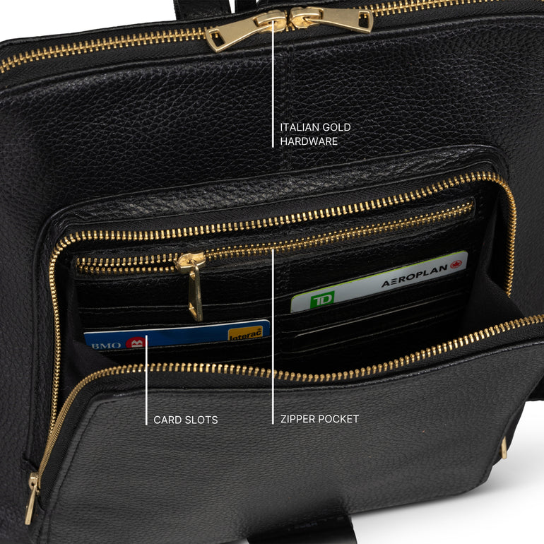 Featuring hand-polished Italian hardware and smooth zippers, this organizer is crafted from beautiful pebbled full-grain leather. The front pocket includes 6 card slots, a slip pocket for cash or receipts, and a wide zipper pocket.