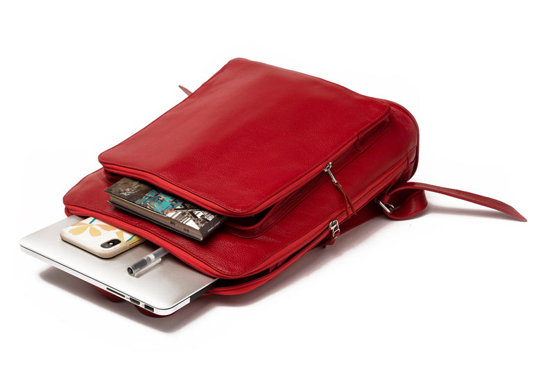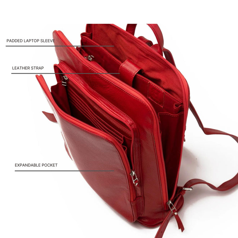 Tech Leather Backpack, available in three sizes, is made from high-quality, eco-friendly leather. It's perfect for students and professionals, with two main compartments and a padded spot for laptops up to 16 inches. It's durable, stylish, and has lots of pockets for your stuff. Plus, its expandable opening design makes it super convenient! Great for everyday use!